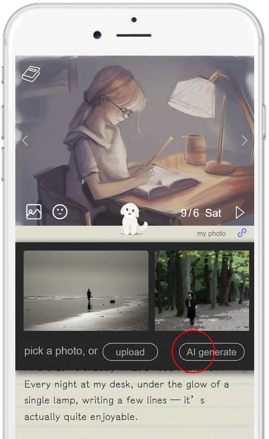 Zigi also offers the [AI generate] feature, which draws a cover image based on your diary entry. The style is randomly chosen between modern illustration and abstract art. If you’re not satisfied, you can simply click it to draw again until you are.