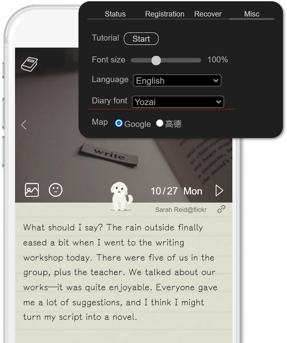 When reinstalling the app, go to [Setting], switch to the [Recover] section, and enter the email used for registration along with the security code. This will restore your original diary data.Q: Why ask to enable location services?